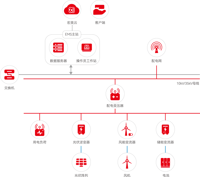 银河集团风光储一体化解决方案是融合物联网技术,将风能、太阳能、储能以及EMS能源管理系统结合起来,实现风、光、储多能互补协同运行,能源精准调配减少弃风弃光,提高能源综合效率,同时通过调峰、调频和调相等功能,有效抑制电网波动,提升电网稳定性、可靠性。