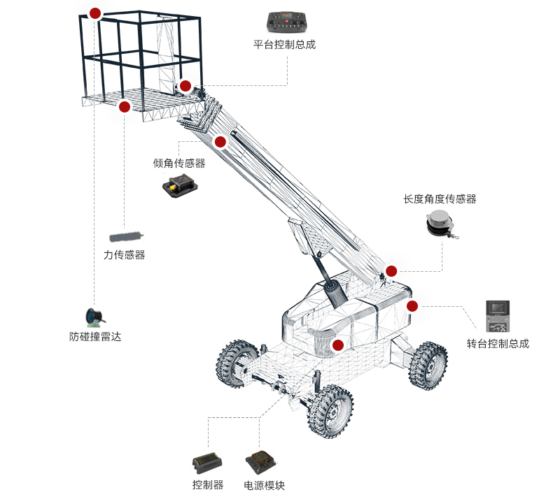 银河集团直臂式高空作业平台配备智能控制技术和安全监测装置,通过采集AI模拟量、DI数字量并结合运动算法后,对PWM信号、DO信号进行自动化控制,从而在安全的范围内实现各种自动功能,确保作业平台在高度作业中的精确定位和安全稳固。适用于高层建筑、大型设施维护等场景。